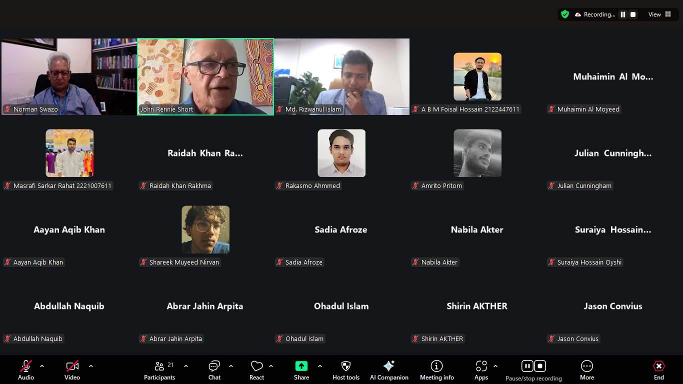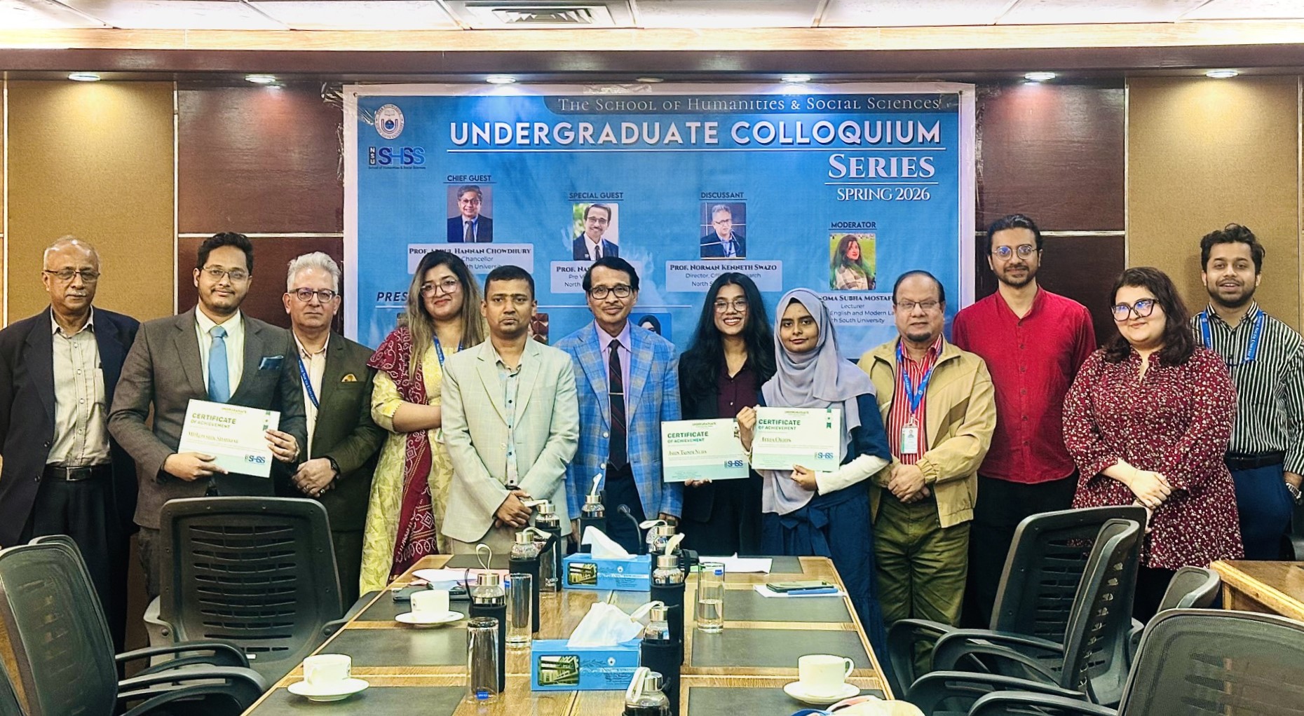Papers were presented by Ms. Tanzim Binta Pervaz, Ms. Miftahul Jannat Sachi, and Mr. Bashirul Islam Bihango, undergraduate students of SHSS, North South University on 12 November 2025 at the Undergraduate Colloquium Series, Fall 2025.
