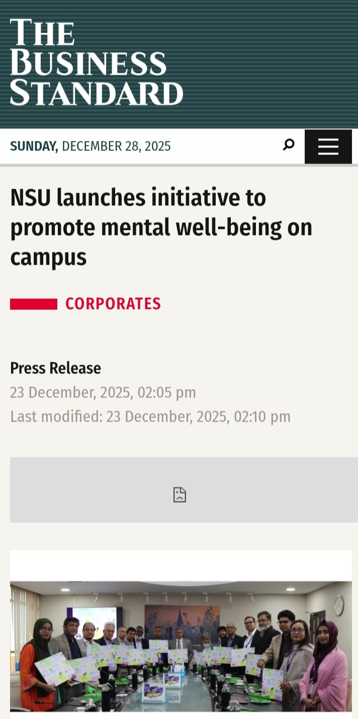 It is a support system for the NSU community to addresses their emotional well-being. It serves as a primary mental health care unit for the students, faculty members, and staff of the University. The center offers various therapeutic approaches and advice for further referrals on mental health issues.