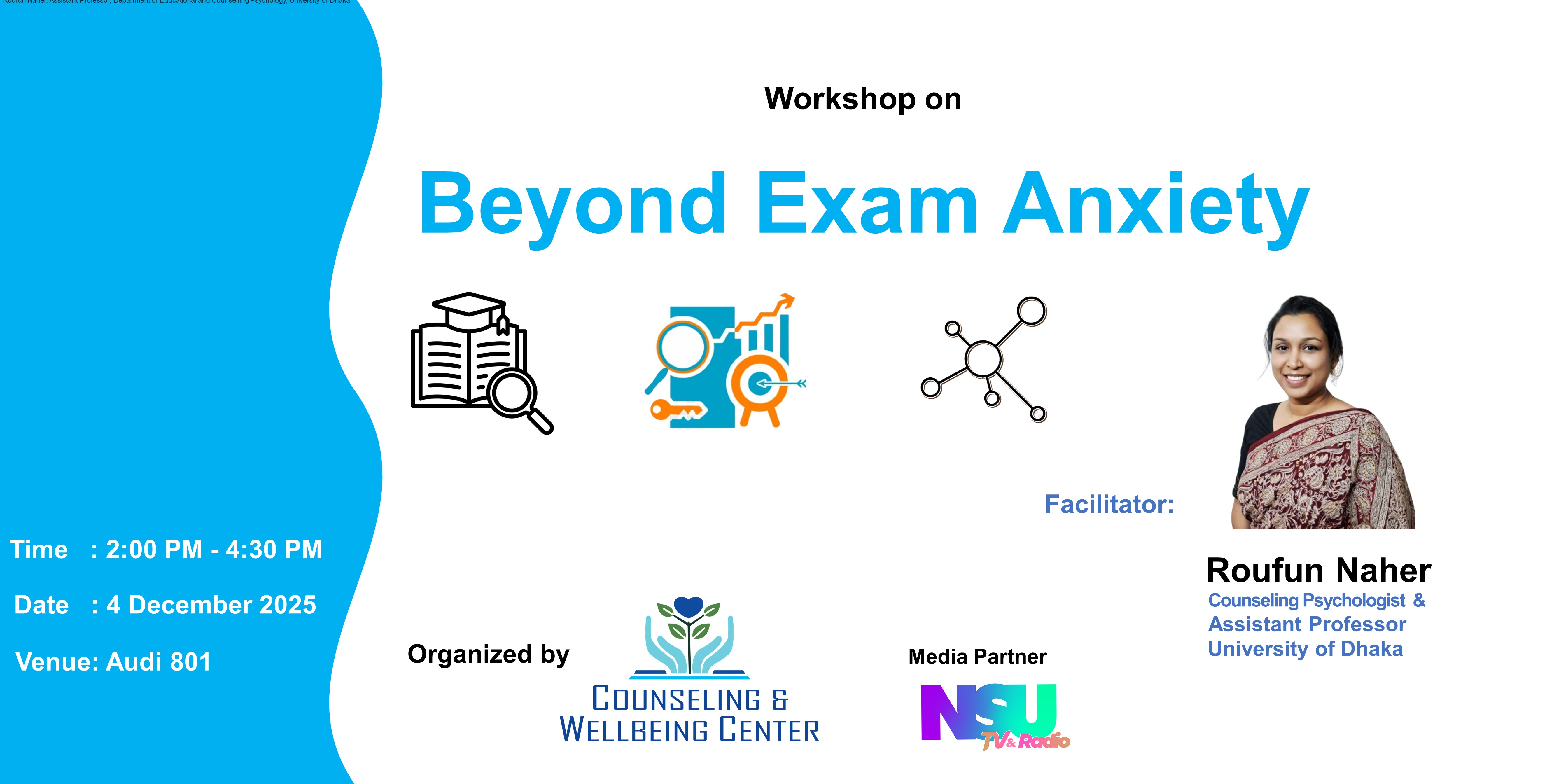 The Counseling & Wellbeing Center(CWC) is going to organize a workshop titled "Beyond Exam Anxiety" for the NSU student community.