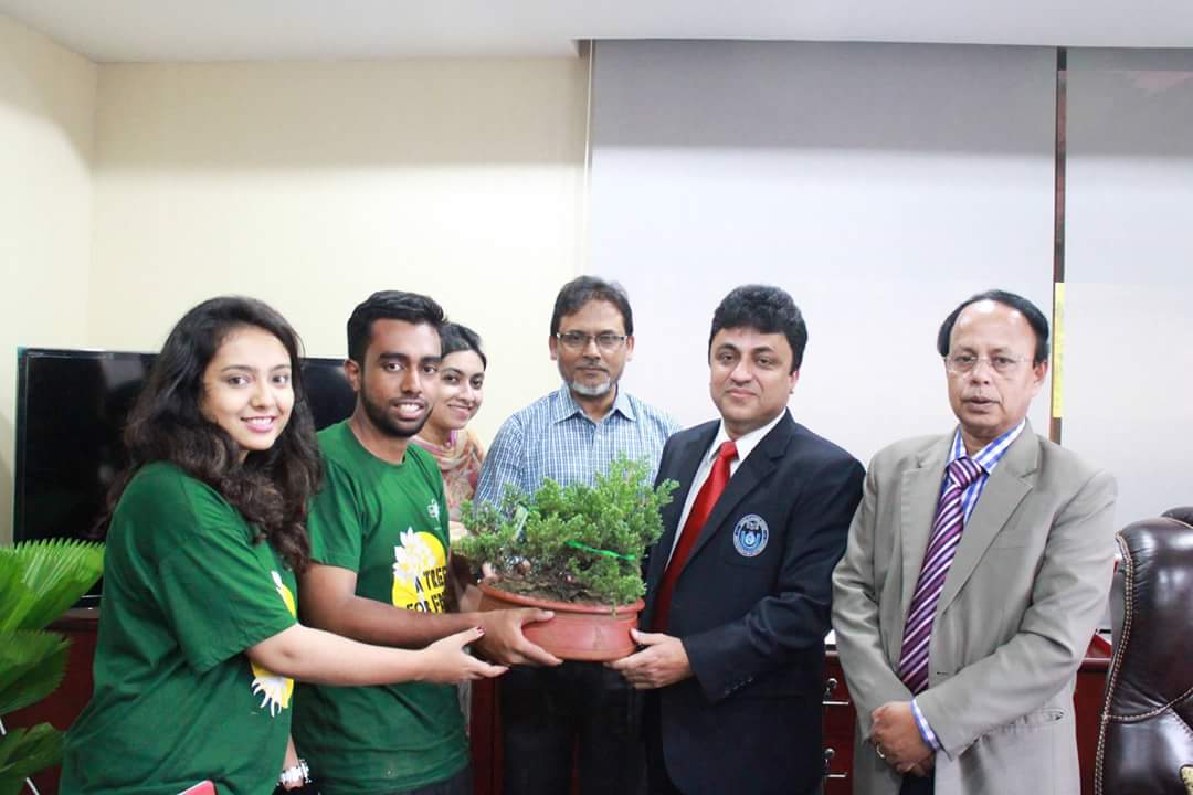 Earth Club President presents a tree to the Treasurer of NSU at their 'A Tree for a Tree Campaign'