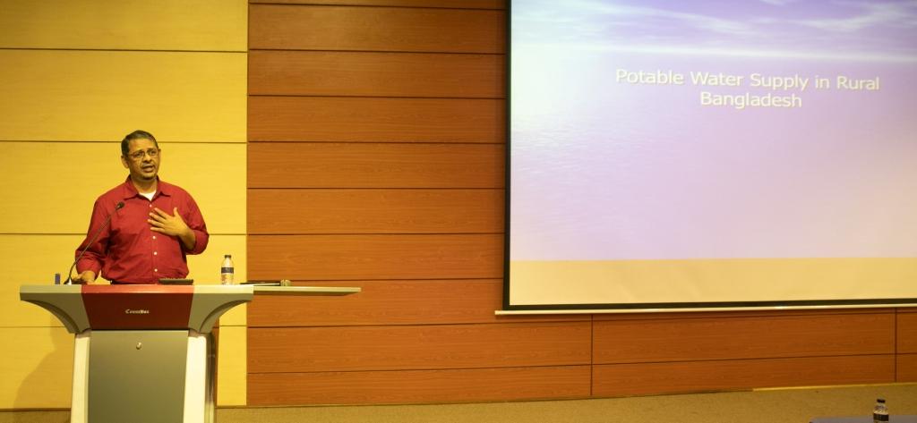 The Department of Civil and Environmental Engineering (DCEE) of North South University hosted a seminar titled: “Potable Water Supply in Rural Bangladesh – Alternative Technological Options†on July 10, 2019 (Wednesday) at 11:00am in AUDI 801. Dr. Javed Bari, Dean, SEPS and Dr. Md. Sirajul Islam, Professor, DCEE, Dr. Shama E. Haque, Associate Professor, DCEE and Ms. Bushra M. Islam, Lecturer, DCEE were present in the seminar. Dr. Haque along with Ms. Islam and sixteen DCEE student volunteers organized this lively seminar. The seminar focused on potable water problems and crisis in coastal belt areas of Bangladesh. The speaker introduced audience members to alternative technological option and particularly the speaker focused on pond sand filters (PSF). Dr. Hasan Mushtaq, the keynote speaker, shared his personal experience and thoughts/views on the topic.